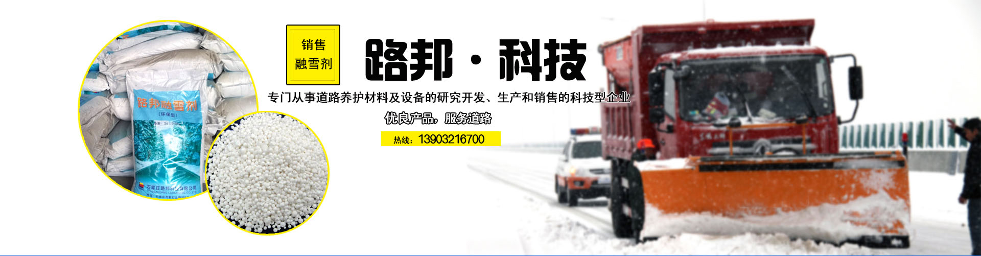 石家莊路邦科技有限公司成立于2001年3月,2001年7月被河北省科學技術廳認定為高新技術企業(yè),是專門從事道路養(yǎng)護材料及設備的研究開發(fā)、生產和銷售的科技型企業(yè),并擁有自營進出口權。 公司依托河北省交通科學研究所和河北工業(yè)大學,長期從事交通科研工作,具有較強的科技創(chuàng)新和研發(fā)能力,目前主要產品——環(huán)保型系列融雪劑、除冰劑、路面...